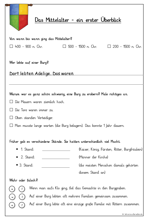 Das weiß ich schon zum Mittelalter & das möchte ich noch wissen: Die Unterrichtseinheit zur Abfrage von Vorwissen & Interessen halte ich ger...
