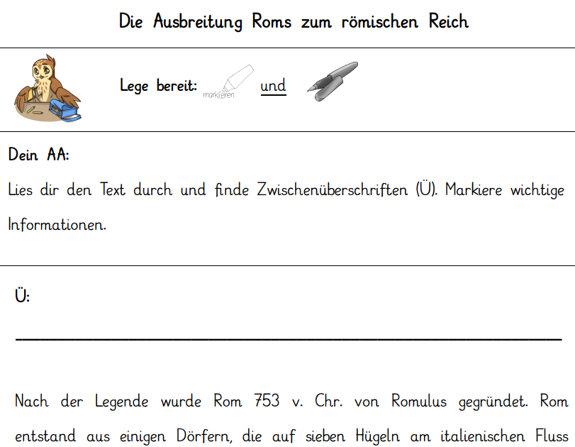 Diese Unterrichtseinheit ist ein wenig lesehaftig. Die Kinder bekommen ers einen Text zur Sage vom Romulus und Remus, in der sie erfahren, warum die S...