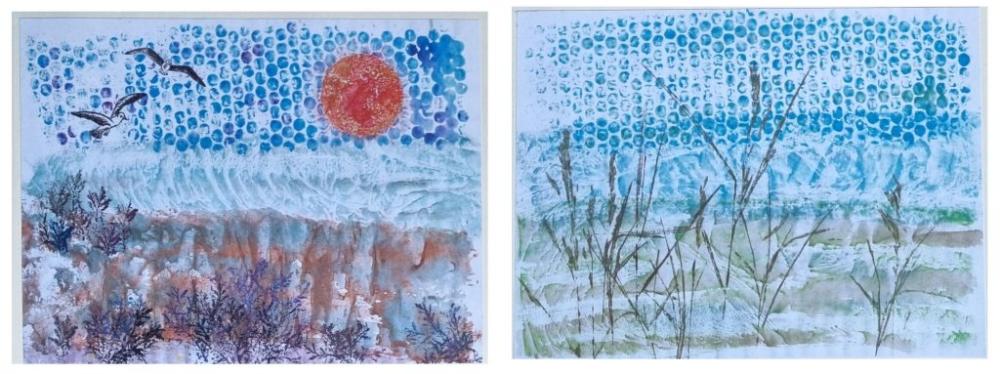 Nach zwei bis drei Stunden freien Druckens kann man an gezielte Bildgestaltungen gehen. Dazu kann man vorhandene Druckprodukte als Gestaltungsfläche ...