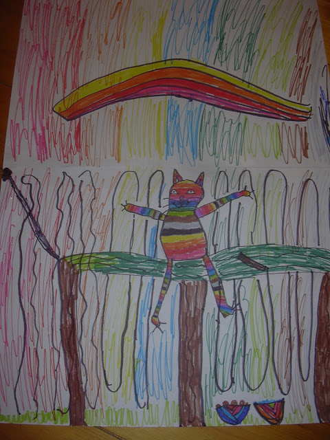 Meine Tochter hat ein paar Bilder mit ihren neuen Filzstiften gezeichnet. Ehrlich gesagt, ich kann mich zwischen Regenbogenkatze und bunten Menschen b...