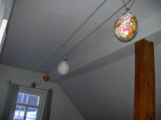 Heute zeige ich tolle Lampenschirme, die meine Kinder gefertigt haben. Einfach einen Luftballon aufblasen, Maizena (Maisstärke) mit Wasser zu Kleiste...