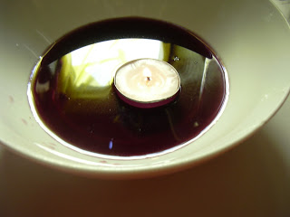Für diese Bastelarbeit benötigt man ein paar alte, bunte Kerzenreste und ein wassergefülltes Glas, das sich nach oben hin nicht verjüngen soll (ke...