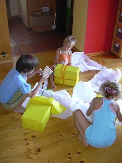 ... Überraschungen am Morgen! Dass sich die Kinder über das Einstandsgeschenk einer Freundin sehr freuen ist klar, wenn man...die bunten Pakete...