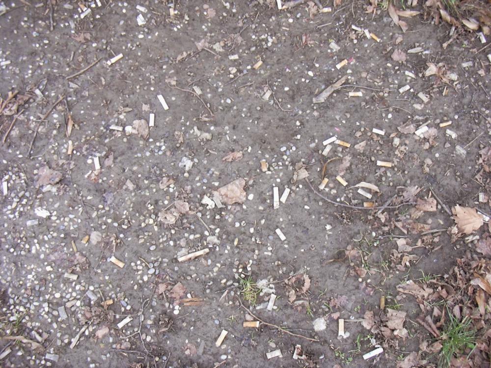 Ich musste da mal fassungslos ganz genau hinsehen...Was haben die ganzenZigarettenstummel eigentlich...auf dem Spielplatz zu suchen??? Man beachte bit...