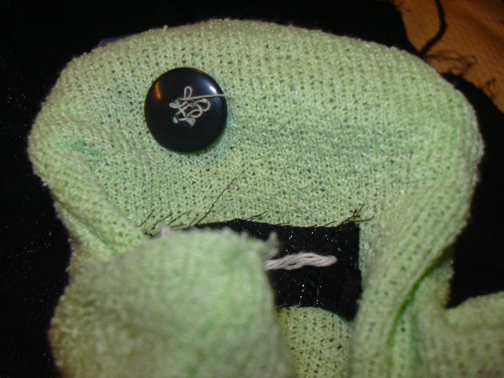 Wie schon gestern angekündigt, zeige ich heute zwei Handpuppen, die meine Söhne in Eigenregie hergestellt haben. Die erste, der einäugige grüne Ge...