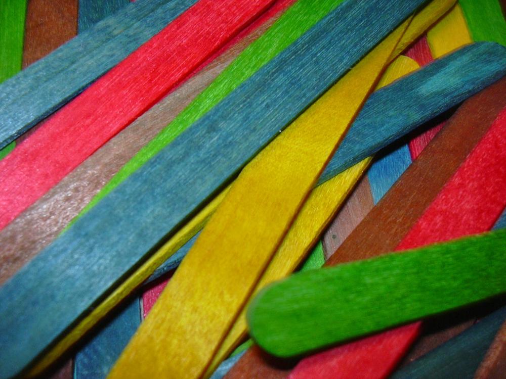 Ohne weitere Vorgaben oder Tipps habe ich den Kindern diese bunten Eisstäbchen und Klebstoff angeboten. Die Ergebnisse sind ganz witzig geworden, seh...