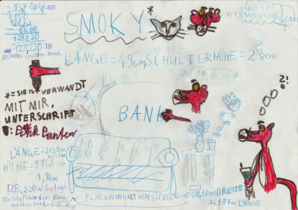 In einer großen, für unsere Kinder absolut unerreichbaren, Höhe entdeckten wir gestern am Morgen diese Zeichnung.Wer weiß, wie die Gebirgs-Szeneri...