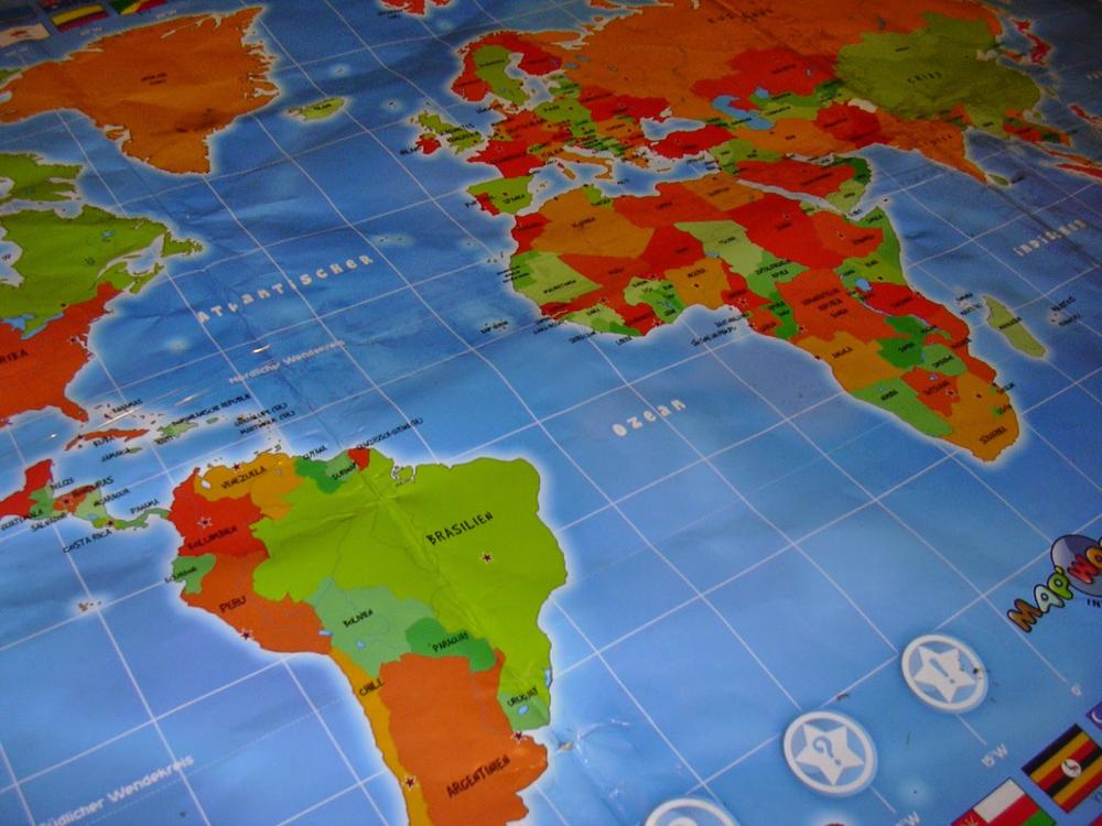 Alte, kaputte Landkarte- wegschmeißen oder einfach für einige Zeit auf den Tisch kleben?Was für eine Frage!Bücherfolie und Klebeband, im Handumdre...
