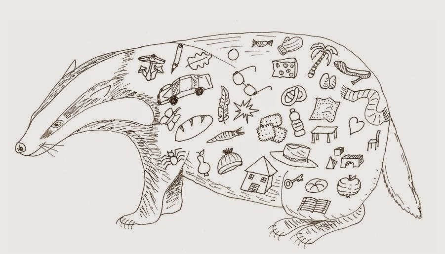 Hier ist meine Version von "Der Fuchs hat ... gefressen":Der Dachs hat... gefressen!Aus dem Fuchs wurde ein Dachs und die Gegenstände habe ich vermeh...