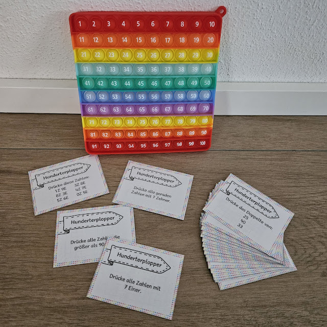 Ich habe ein paar Aufgabenkärtchen für den Hunderterplopper erstellt. Viele Kinder ploppen gerne und gleichzeitig wird die Orientierung am Hunderter...